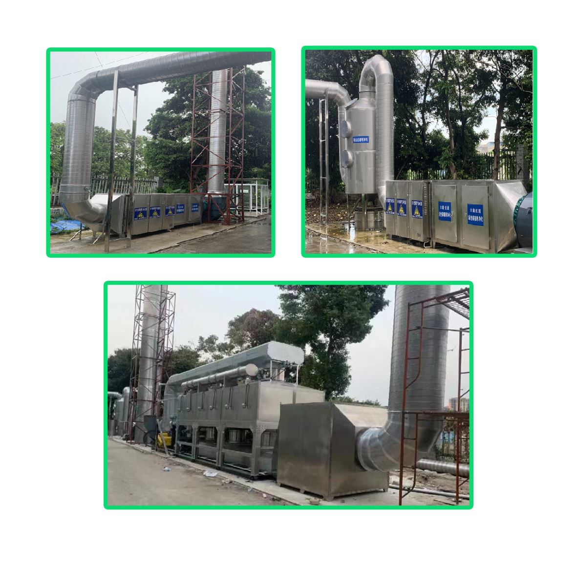 2、人造革發(fā)泡烘箱:噴淋清洗+濕電除油+干式過濾+吸附濃縮+催化燃燒1套,風(fēng)量為30000m3/h;